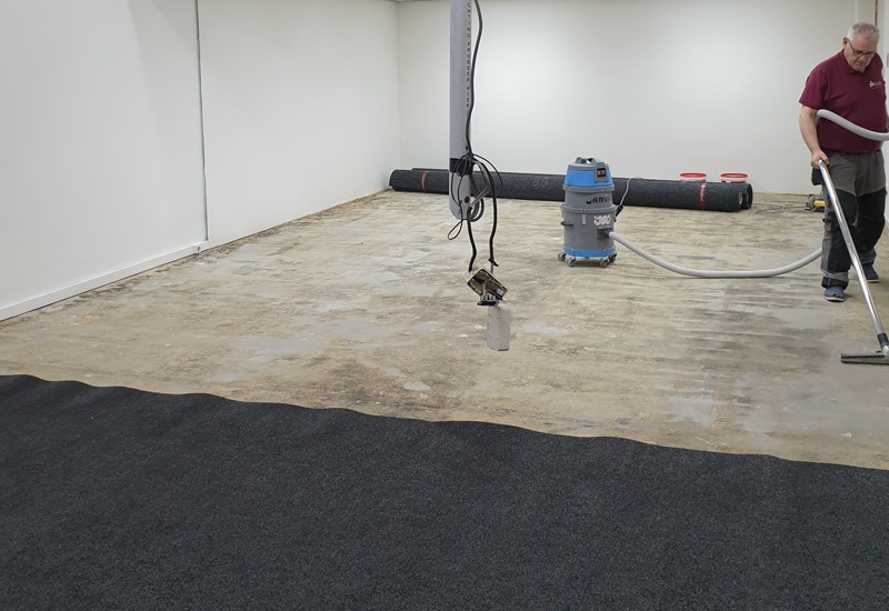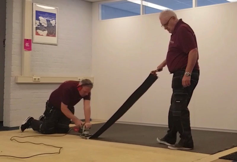 Gelukkig verliepen de werkzaamheden voorspoedig waardoor wij uiteindelijk het leggen van het tapijt binnen één werkdag konden afronden.
