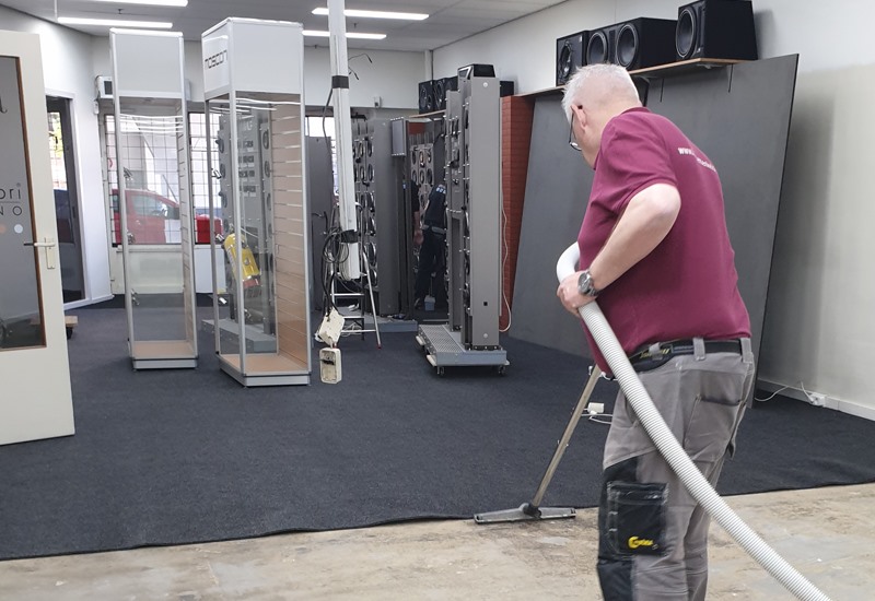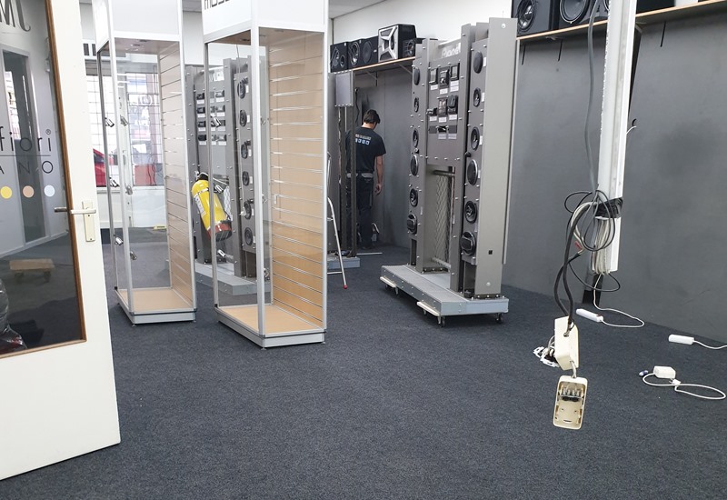 Bij JM Car Hifi was hoognodig nieuwe vloerbedekking nodig, omdat deze winkel vol staat met showkasten, werd de vervanging steeds uitgesteld. Samen met Rion werd een planning gemaakt waardoor de winkel maar twee dagen gesloten zou zijn.